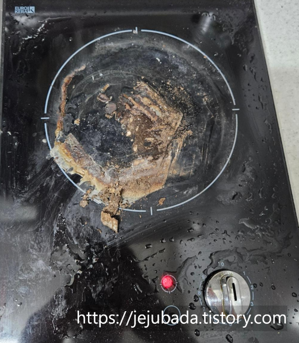 인덕션 위에 음식이 넘치거나 쏟아서 타버렸을 때 정말 당황스럽죠.