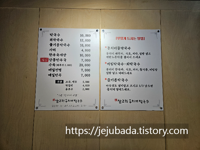 제주시 오라동에 위치한 삼교리 동치미 막국수에요.