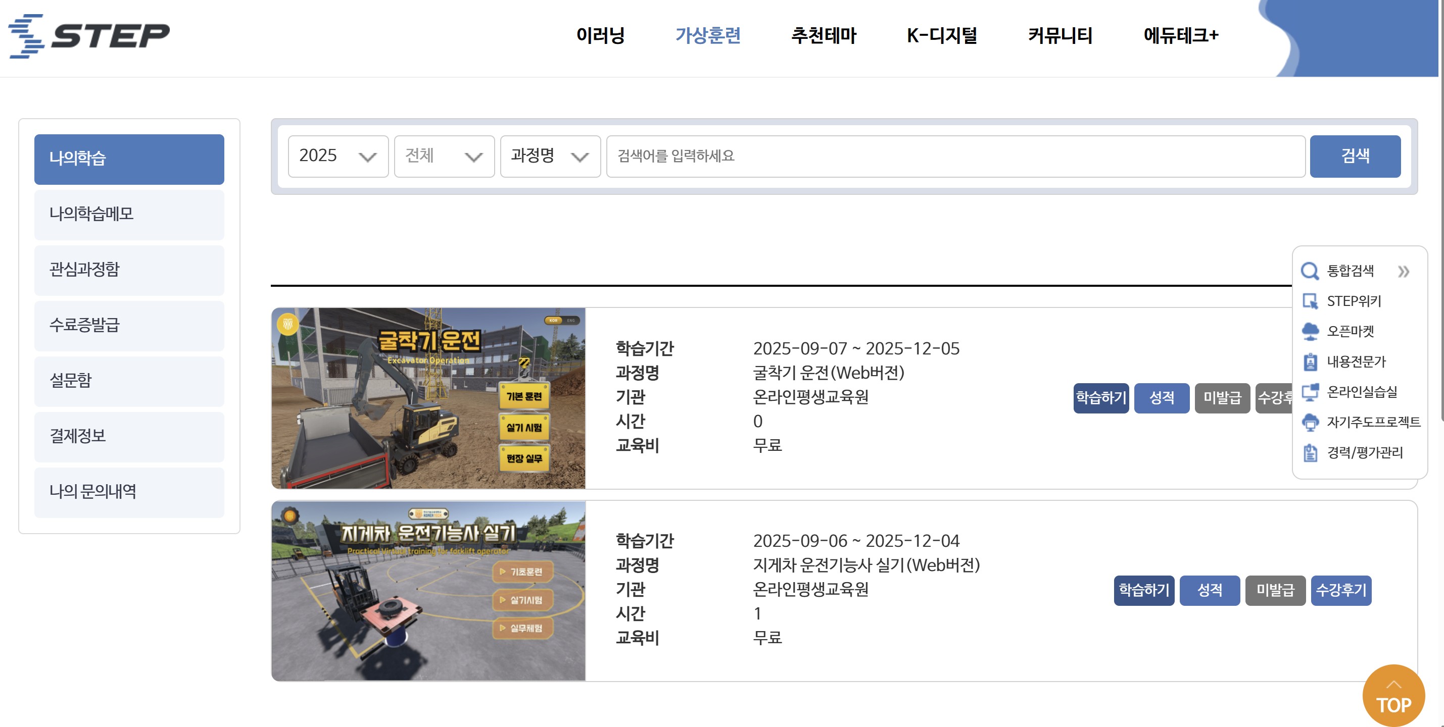 이 시뮬레이터는 국민평생직업능력개발 STEP 사이트에서 무료로 이용할 수 있습니다.
