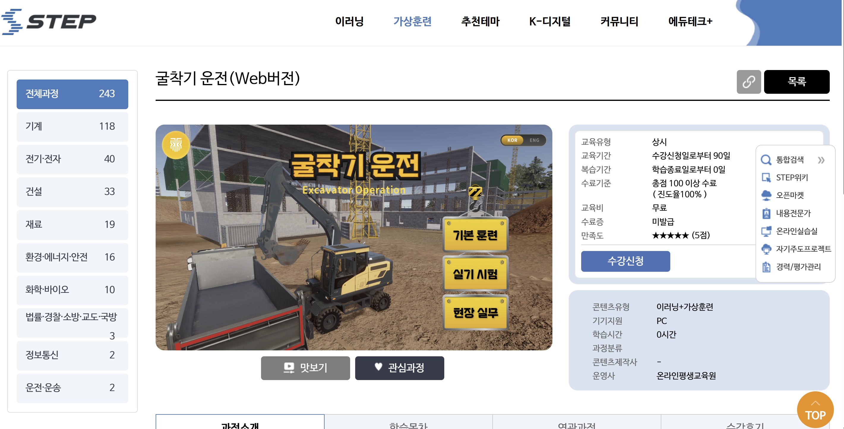 지금까지 평생교육원의 굴착기 시뮬레이터를 알아보았는데요,