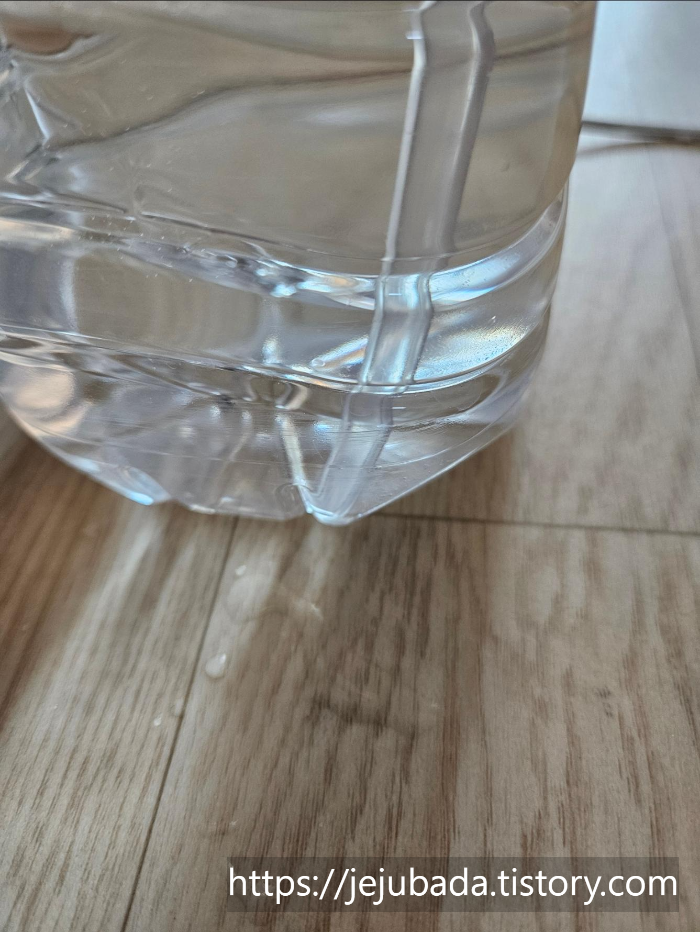 나. 패트병에 호스를 넣고, 반대편 호스를 입으로 빨아들인다.